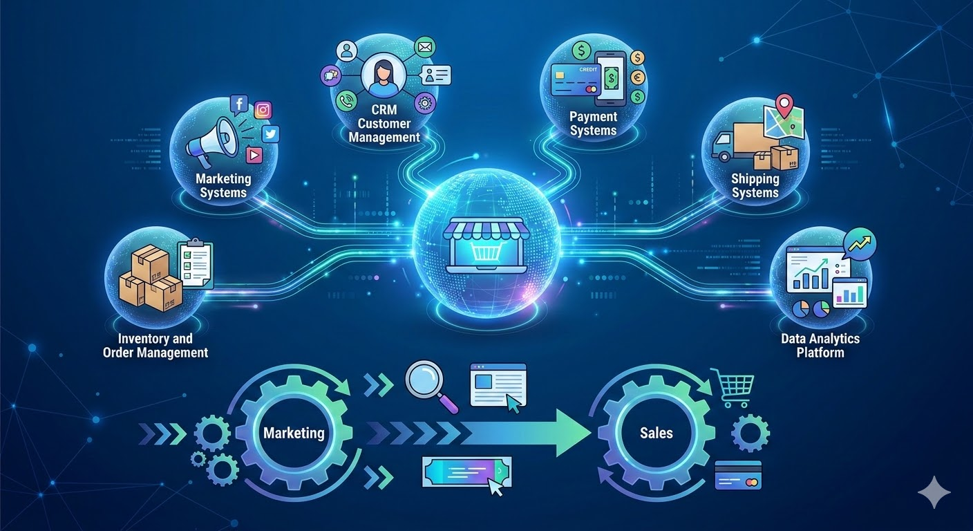 Trong hệ sinh thái số của doanh nghiệp, nền tảng thương mại điện tử đóng vai trò quan trọng trong việc kết nối marketing, bán hàng, dữ liệu khách hàng và vận hành doanh nghiệp. Khi được triển khai hiệu quả, nền tảng thương mại điện tử không chỉ giúp doanh nghiệp tăng doanh thu mà còn trở thành trung tâm của hệ sinh thái kinh doanh số.