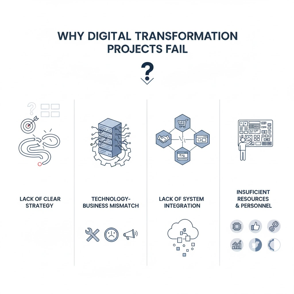 Mặc dù nhiều doanh nghiệp đã đầu tư mạnh vào chuyển đổi số, nhưng không phải dự án nào cũng đạt được kết quả như kỳ vọng. Nguyên nhân thường nằm ở việc thiếu chiến lược rõ ràng, lựa chọn công nghệ chưa phù hợp và chưa biết cách tối ưu nền tảng số để khai thác tối đa giá trị của hệ thống.