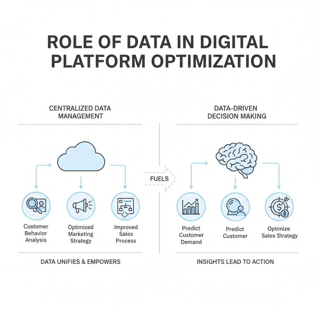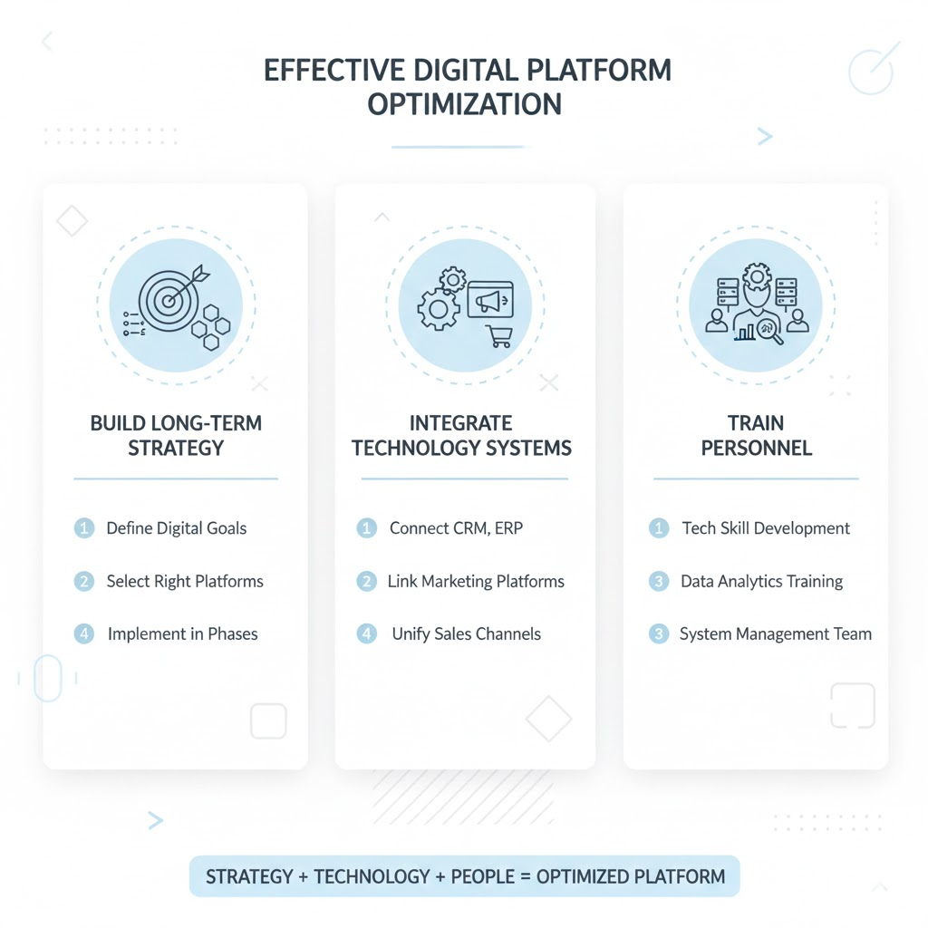 Tối ưu nền tảng số là quá trình cải thiện và nâng cao hiệu quả hoạt động của các hệ thống công nghệ trong doanh nghiệp nhằm hỗ trợ vận hành, phân tích dữ liệu và quản lý trải nghiệm khách hàng tốt hơn.